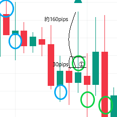 30pipsも更新すれば流石に抑え込む勢力はいなくなり反対に損切りや新規の買い注文でグンと伸びやすいです。